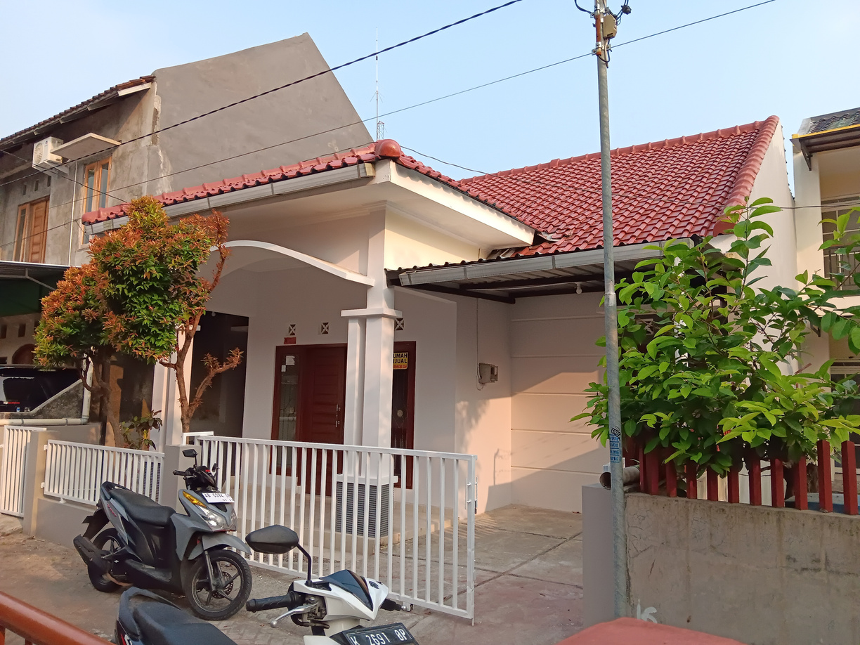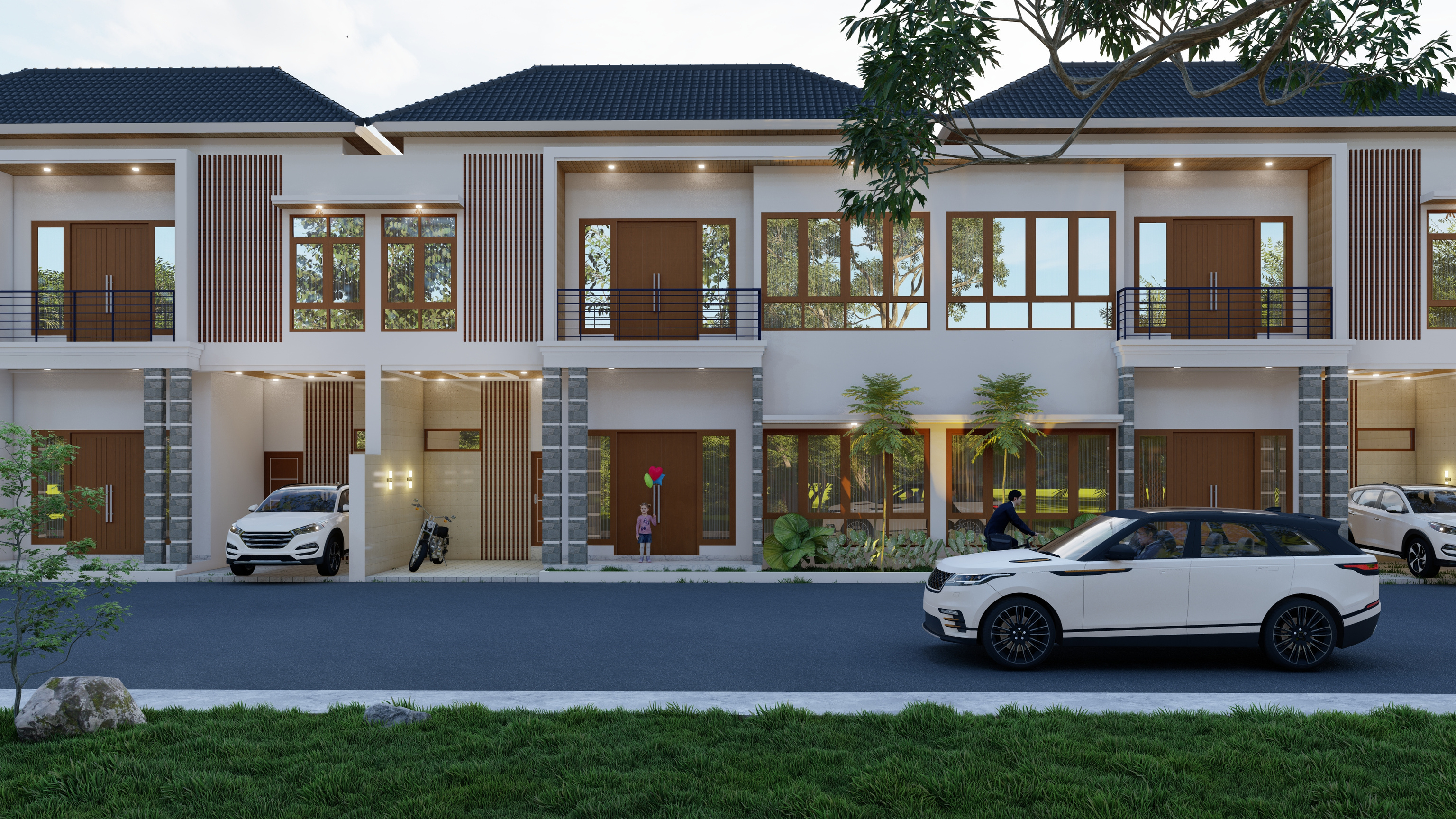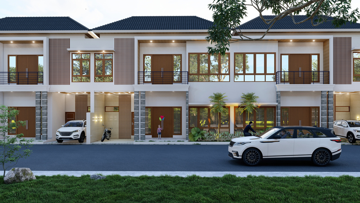Rumah Moderen Kontemporer Dengan 3 Kamar Tidur, 2 Kamar Mandi, Carpot, Taman Depan, Ruang Tamu, Ruang Keluarga, Laundry Room, Balcon, Jalan Perumahan 5m.